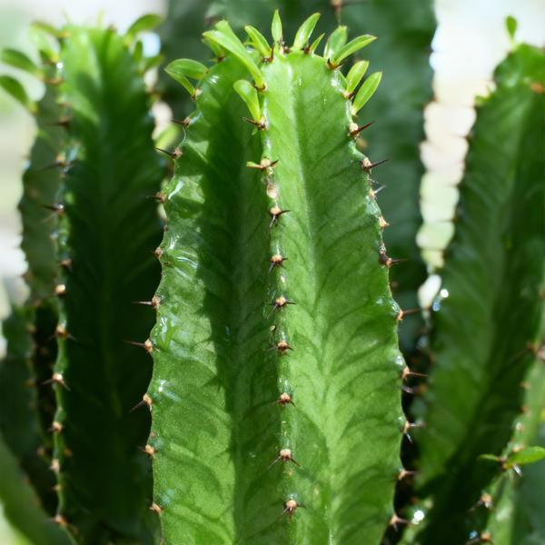Die Euphorbia eritrea schafft eine Atmosphäre von Ruhe und Gelassenheit. Das gerade, aufrechte Wachstum der Stängel vermittelt ein Gefühl von Stabilität und Kraft. Darüber hinaus sind die Stängel oft mit einer feinen Schicht kleiner Dornen bedeckt, was der Erscheinung der Pflanze eine zusätzliche Dimension verleiht.
